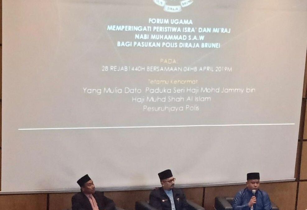 GADONG, Khamis 4 April 2019 – Pasukan Polis Diraja Brunei (PPDB) telah mengendalikan satu forum ugama bersempena sambutan Isra’ dan Mi’raj Nabi Muhammad S.A.W bertempat di Auditorium, Ibu Pejabat Pasukan Polis Diraja Brunei Jalan Tungku.