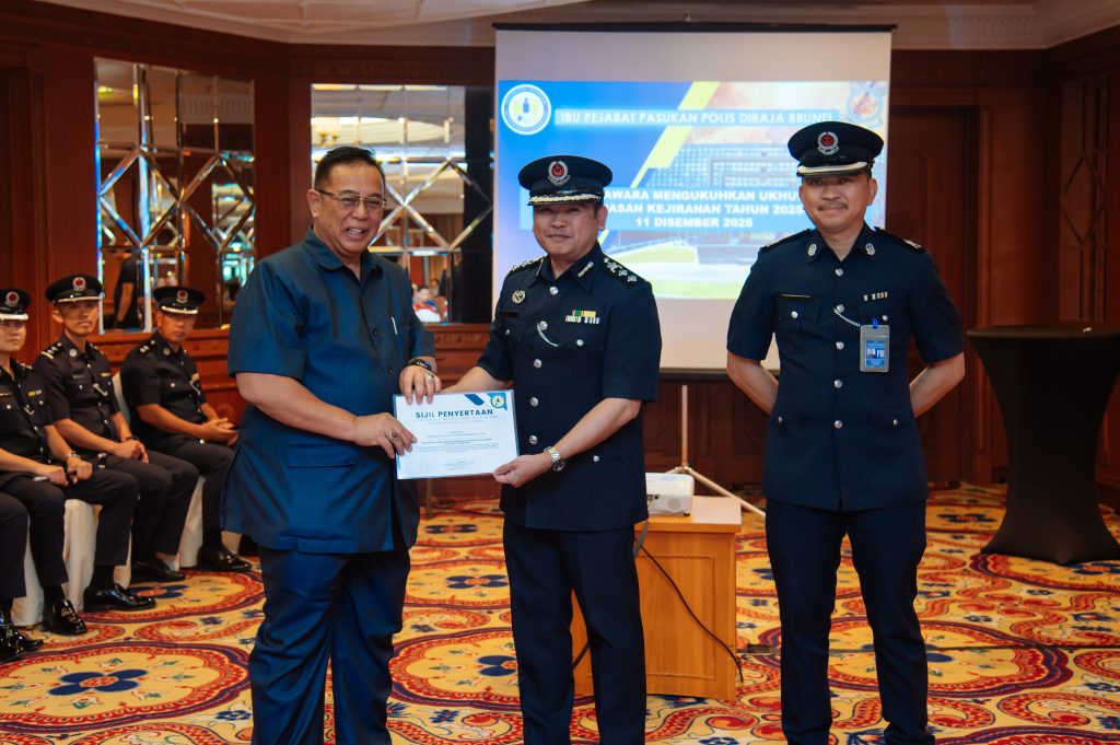 GADONG, Khamis, 11 Disember 2025 – Pasukan Polis Diraja Brunei (PPDB) telah mengadakan Jerayawara Mengukuhkan Ukhuwah Pengawasan Kejiranan selama dua hari bertempat di The Rizqun International Hotel, Gadong yang diakhiri dengan Majlis Penutup dan Penyampaian Sijil kepada 60 orang peserta. Jerayawara tersebut adalah berkesinambungan dengan Kursus Asas Pengawasan Kejiranan yang pernah diadakan sebelum ini di keempat-empat Daerah.