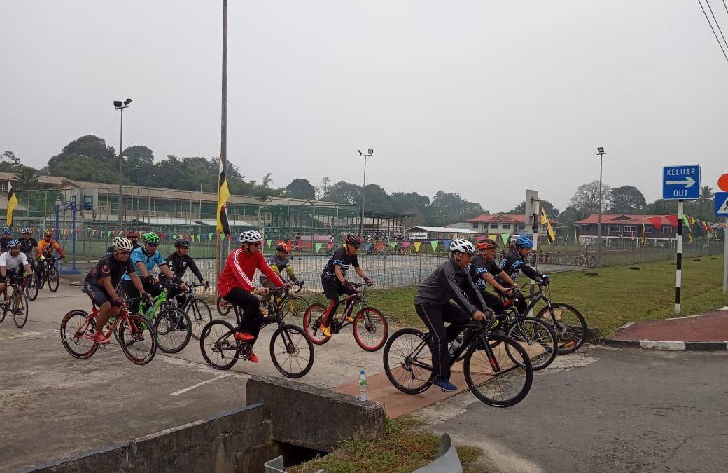 BRUNEI MUARA, Ahad 15 Sept 2019 – Unit Pengawasan Kejiranan Focal Point Balai Polis Kampong Ayer bersama anggota balai dan ahli Pengawasan Kejiranan kampung telah menghadiri aktiviti Majlis Kayuhan Basikal Persatuan Belia Lumapas.