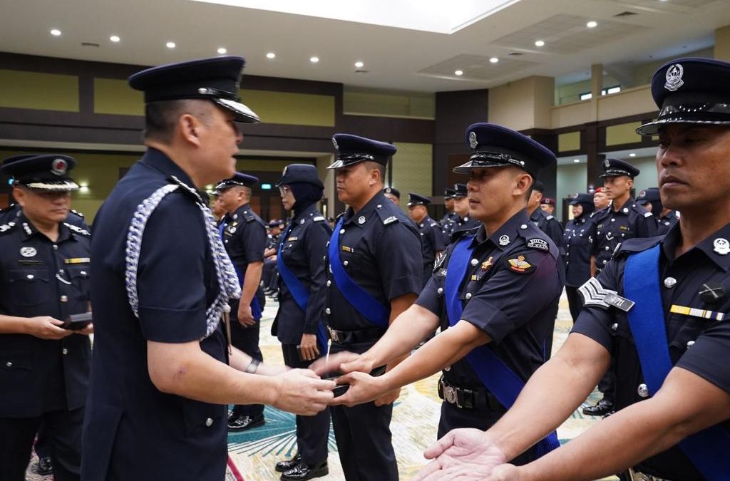 GADONG, Sabtu 19 Ogos 2023 – Seramai 145 orang pegawai dan anggota pangkat rendah, Pasukan Polis Diraja Brunei (PPDB) menerima Pingat Kerja Lama Polis (P.K.L.P) dalam satu majlis penyerahan yang berlangsung di Dewan Bankuet Mes, Kompleks Ibu Pejabat, Pasukan Polis Diraja Brunei, Gadong hari ini.