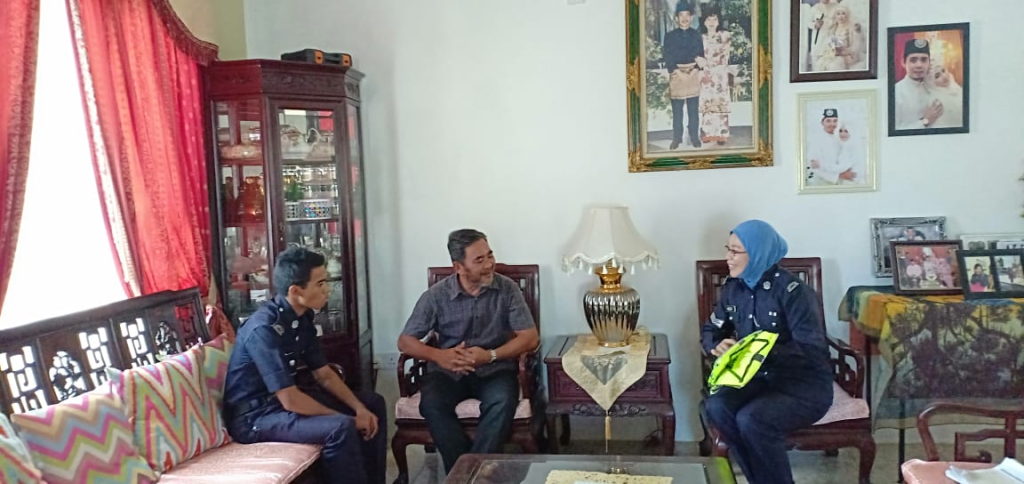LIMAU MANIS – Kediaman Ketua Kg Panchor Murai, Yang Mulia Haji Matassan bin Haji Salleh tidak ketinggalan menerima lawatan pendekatan daripada fokal point PK Balai Polis Limau Manis, Koperal Pg Md Iskandar.