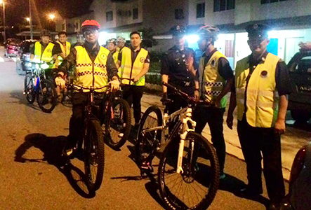 Rondaan pencegahan dengan menggunakan basikal menyemarakkan lagi semangat semasa rondaan yang di jalankan di sekitar Kawasan RPN Kg Panchor Mengkubau yang berakhir pada jam 1.30 pagi semalam.