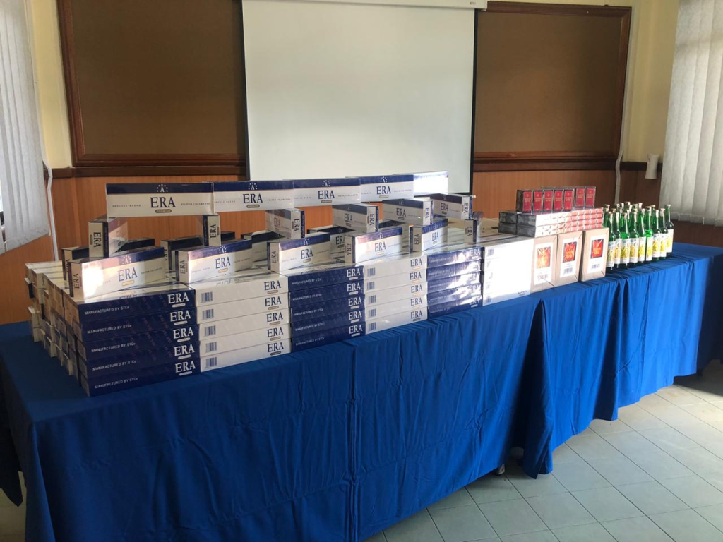 Sejurus membuat pemeriksaan ke atas kotak-kotak tersebut telah mendapati ianya adalah barang-barang tegahan berupa rokok dan minuman keras.