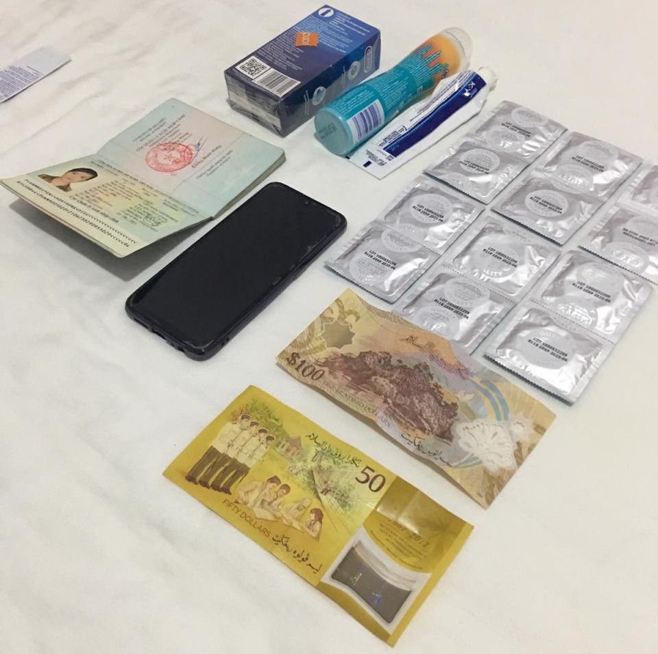 Semasa serbuan Pihak Polis telah menemukan beberapa bahan bukti seperti beberapa kepingan kondom dan wang tunai di lokasi kejadian dipercayai untuk tujuan kegiatan menawarkan khidmat seks.