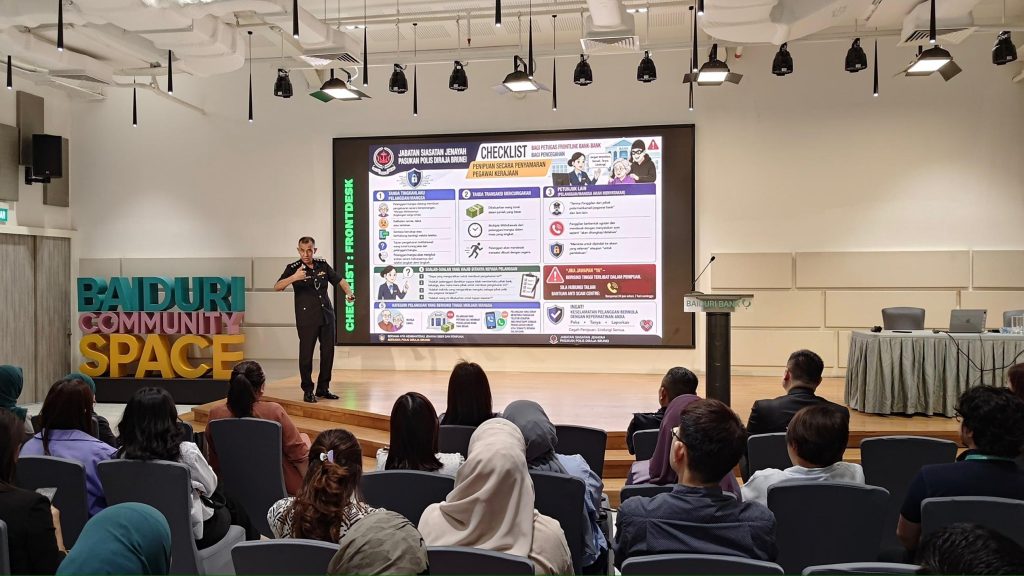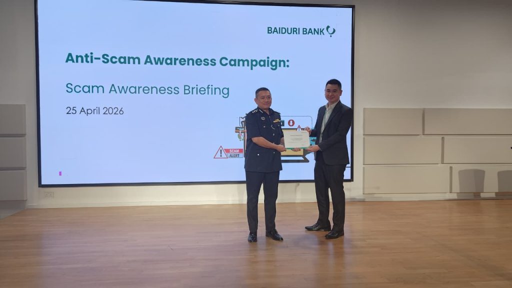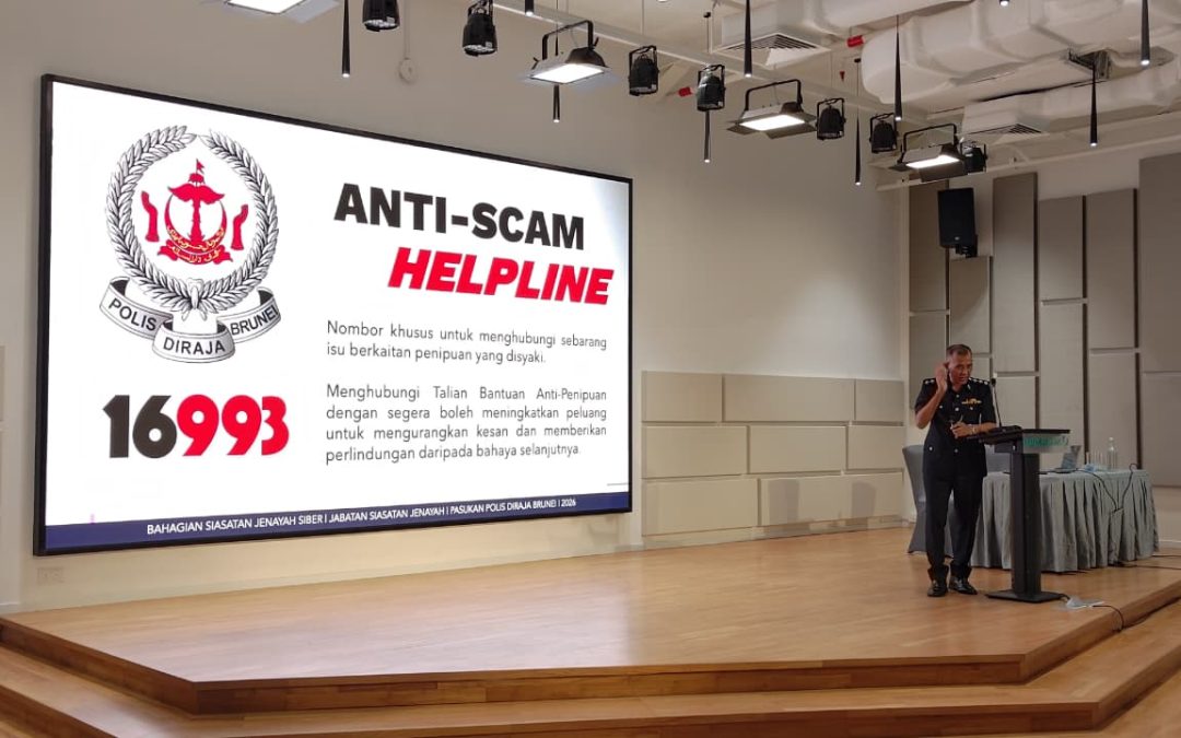 GADONG, Sabtu, 25 April 2026 –Bahagian Siasatan Jenayah Siber (BSJS), Jabatan Siasatan Jenayah (JSJ), Pasukan Polis Diraja Brunei (PPDB) telah mengadakan taklimat mengenai penipuan dalam talian kepada kakitangan Baiduri Bank di Ibu Pejabat Baiduri Bank, One Riverside, Gadong, pada petang Sabtu.