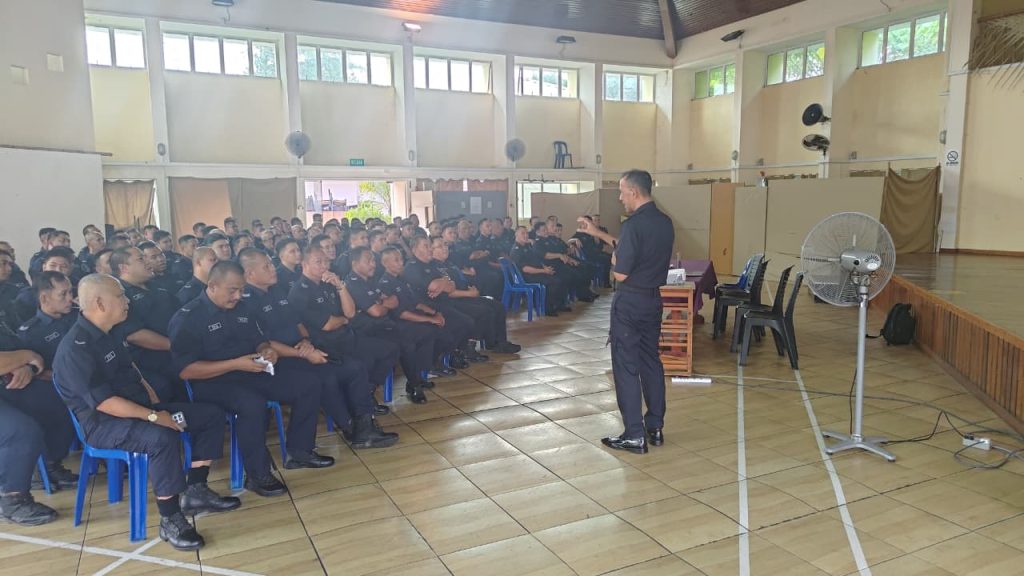 Taklimat telah disampaikan oleh Ketua Inspektor, Adinin bin Haji Ahmad kepada 106 orang anggota bertempat di Dewan Serbaguna Pasukan Simpanan ‘B’ Kompeni.