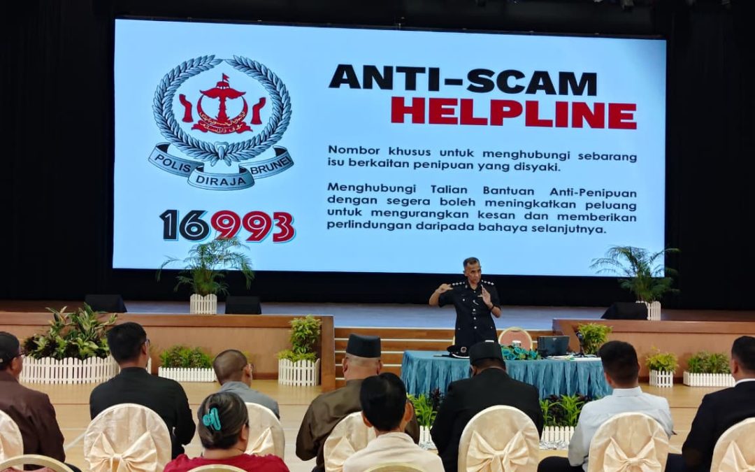 Kuala Belait, Isnin, 19 Januari 2019 – Bahagian Siasatan Jenayah Siber (BSJS), Jabatan Siasatan Jenayah (JSJ), Pasukan Polis Diraja Brunei (PPDB) telah menyampaikan satu taklimat bertajuk “Penipuan Dalam Talian” dengan kerjasama Jabatan Daerah Belait serta Jawatankuasa Keselamatan Daerah Belait, khusus bagi warga emas di Daerah Belait.